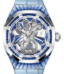 Royal Oak Flying Tourbillon in White Gold with Blue Saphhire Diamond Case On Light Blue Alligator Leather Strap with Openworked DialReference Number : 26227BC.SS.D314CR.01 |