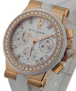 Expanding to include luxury watches during the 40's, Bvlgari made sure every timepiece is a reflection of what the brand stands for - - peerless quality and impeccable design. The Bvlgari Diagono 35mm Rose Gold collection is every bit in line with its long standing tradition of drawing inspiration from Italian designs and Swiss mechanical expertise. The line provides a vast array of options, with 18K Rose Gold case. Exhibiting a thorougly powerful appeal, a Bvlgari Diagono 35mm Rose Gold measures 35mm in size and diamond bezel. Powered by self-winding automatic movement with hours, minutes, seconds and date functions with chronograph on its mother of pearl with diamond dial, this Bvlgari Diagono 35mm Rose Gold watch is fitted with white rubber strap.