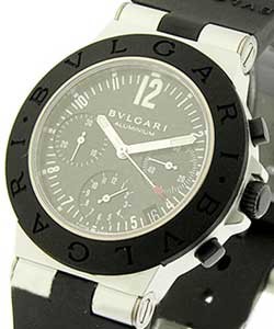Expanding to include luxury watches during the 40's, Bvlgari made sure every timepiece is a reflection of what the brand stands for -- peerless quality and impeccable design. The Bvlgari Diagono 38mm Titanium collection is every bit in line with its long standing tradition of drawing inspiration from Italian designs and Swiss mechanical expertise. The line provides a vast array of options, with Aluminum case. Exhibiting a thorougly powerful appeal, a Bvlgari Diagono 38mm Titanium measures 38mm in size and features the trademark Bvlgari text engraved twice on the rubber bezel. Powered by self-winding automatic movement with hours, minutes, seconds and date functions with chronograph on its carbon fiber dial, this Bvlgari Diagono 38mm Titanium watch is fitted with black rubber strap.