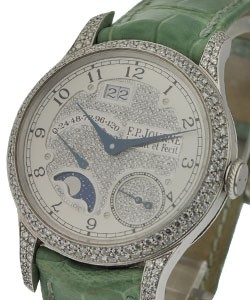 Established in 1999, FP Journe has a growing number of fans who liked their distinctive dials characterized by unusual placements of its recessed apertures and sub-dials. An excellent example would be the FP Journe Octa Lune Platinum which is available in three dimensions: 38mm, 40mm, and 42mm. Boasting of a 120-hour power reserve, the beautiful finishing of the FP Journe Octa Lune Platinum's manual or automatic movement can be seen from its sapphire display caseback. The platinum case perfectly complements a fascinating dial which features an off-center or central hours and minutes, small seconds, large date, power reserve display, and moon phase. The embossed numerals and classic fonts beneath the sapphire crystal further gives it a timeless vibe. Paired with a leather strap or matching platinum bracelet, the FP Journe Octa Lune Platinum is also waterproof up to 30m.