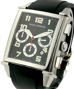 The Girard Perregaux Vintage XXL Chronograph in Stainless Steel on Rubber Strap with automatic chronograph movement. 37 mm x 36 mm. Black dial with silver subdials. Girard Perragaux's status as one of the elite makers of watches is secure. Quality, rarity and a honorable lineage.