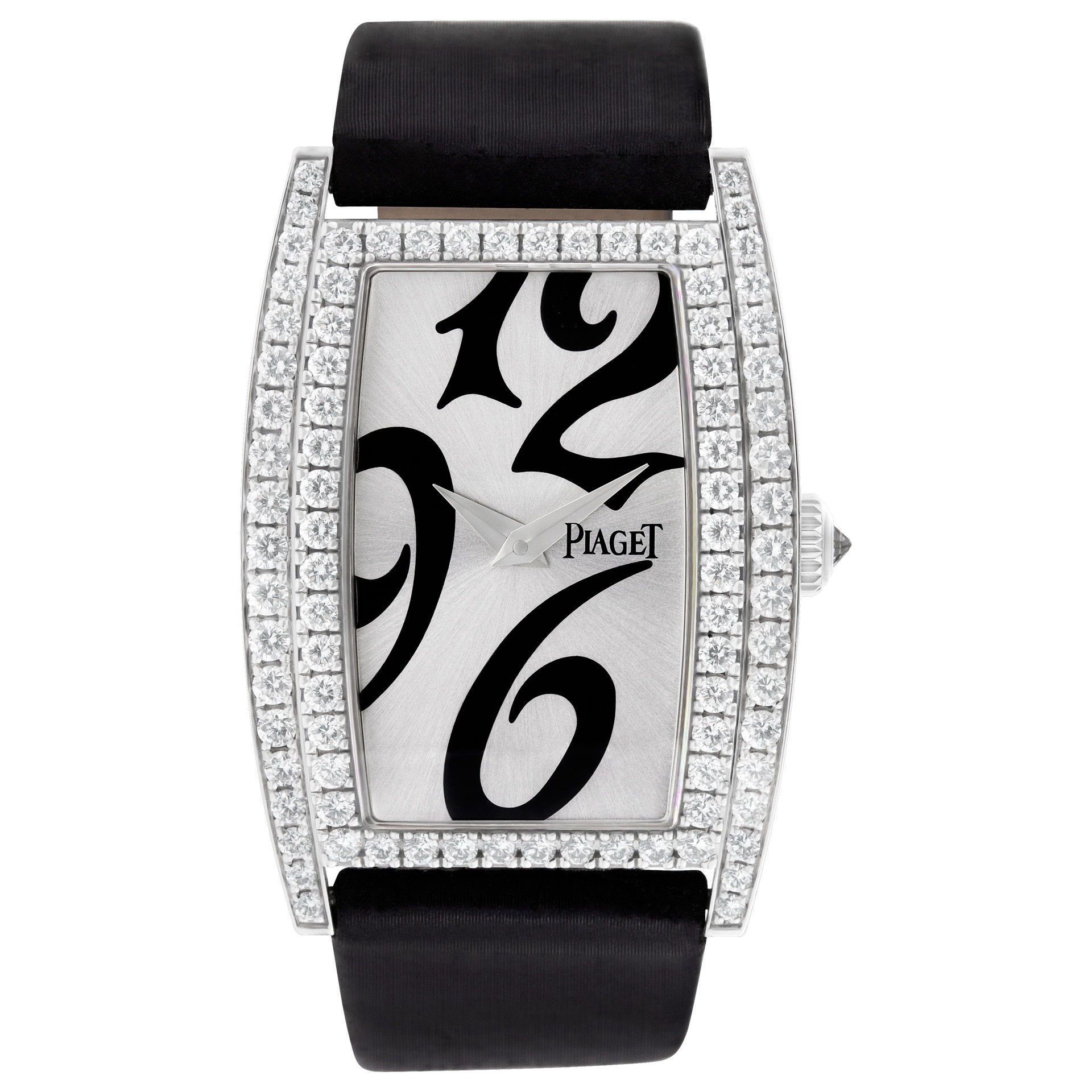 Limelight Tonneau White Gold with Diamond Bezel on Black Satin Strap with Pave Diamond DialReference Number : GOA33091 |