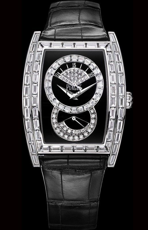 Limelight Tonneau Retrograde in White Gold with Baguette Diamond Bezel on Black Crocodile Leather Strap with Onyx Diamond DialReference Number : G0A32093 |