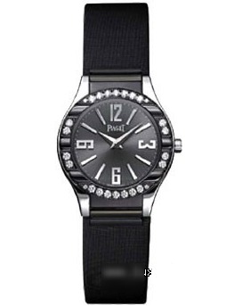 Polo Small in White Gold with Diamond Bezel on Black Satin Strap with Black DialReference Number : G0A31143 |